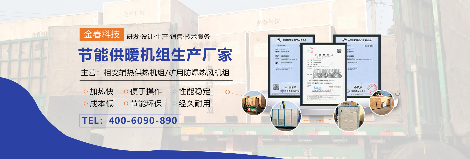 • 多年專注生產相變輔熱供熱機組、礦用防爆熱風機組,可代替燃煤、燃油、燃氣鍋爐